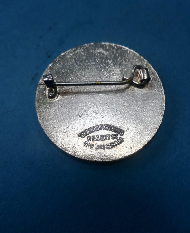 A base metal and enamel badge for the Brighton,Hove & Preston District Nursing Association.It was affiliated to the Queen Victoria's Jubilee Institute for Nurses and supplied Nurses for District Nursing.The badge features the Brighton Pavilion on a green lawn above the waves of the sea. Brighton District Nursing Association appears in Silver on red enamel around the edge.Condition very good,pin and clasp in good order.Makers mark for Thomas Fattorini Regent St Birmingham.Height 32mm