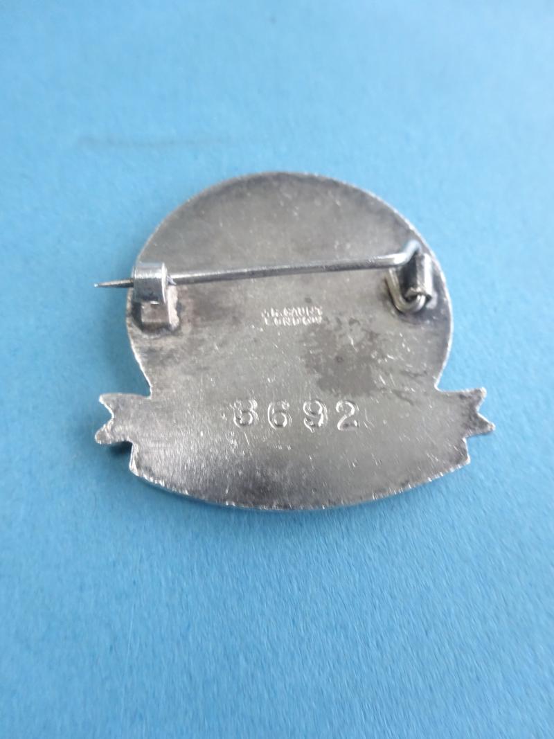 A base metal and enamel badge for what I believe was the Council for Professions Supplementary to Medicine.This one is for the Registered Medical Auxiliary ,Speech Therapist. Good condition with pin and clasp good.Numbered 3692 to rear.Height 33mm