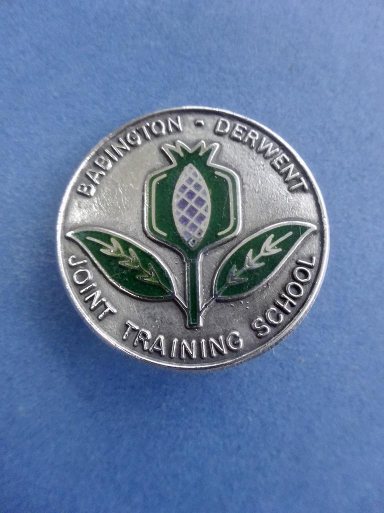 a rare silver and enamel badge for the Babington and Derwent Joint Training School for Enrolled Nurse Training in the 1960s. The central motif appears to depict a Pomegranate flower and fruit, the symbol representing life, fertility, regeneration, and the medicinal, life-giving power of nature. It has featured on many nursing badges including those of Chesterfield.