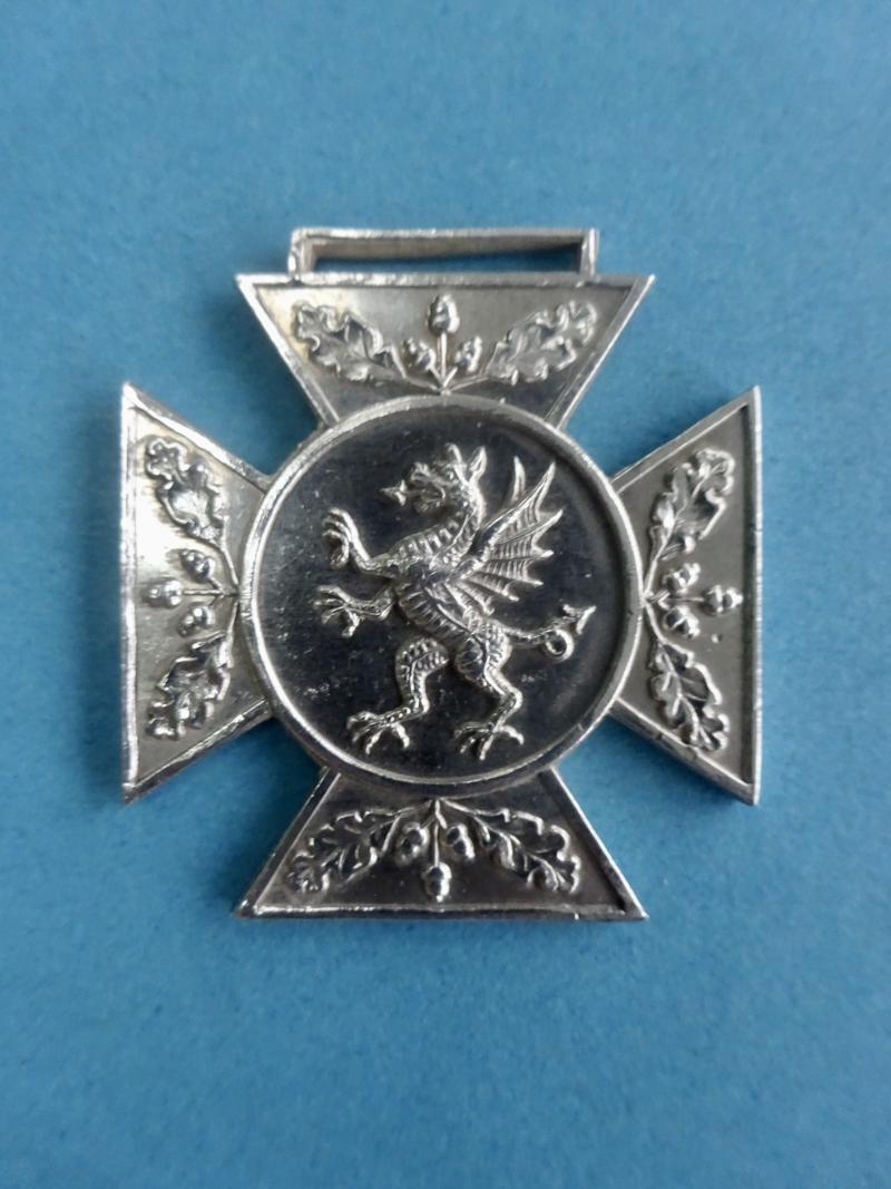 Thist is a silver prize medal presented by the Glamorgan County Asylum Committee to John Morris for gaining the certificate of Proficiency in Nursing of the Medico-Psychological Association of Great Britain & Ireland.It takes the form of a Maltese cross with oak leaf garlands and acorns to the arms and a central motif of a Welsh Dragon