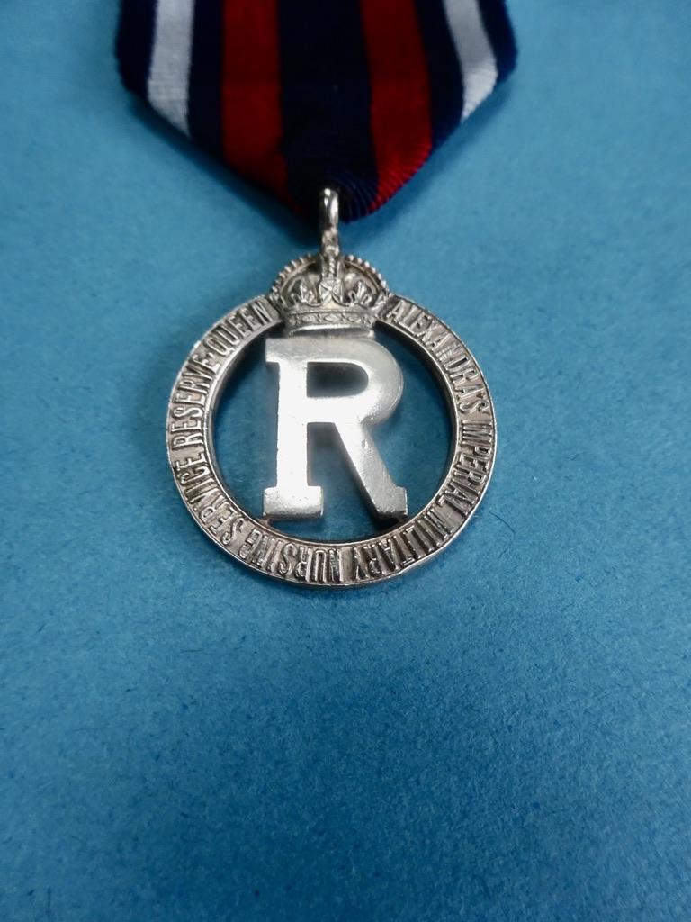 An original Silver Tippet badge for the Queen Alexandra's Imperial Military Nursing Service Reserve.From it's foundation in 1908,(from what had been Princess Christian's Army Nursing Service Reserve)until 1949, this badge would have been worn on the Cape or Tippet.The medal was made of silver and consisted of a voided centre with the letter R for Reserve below an Imperial Crown.