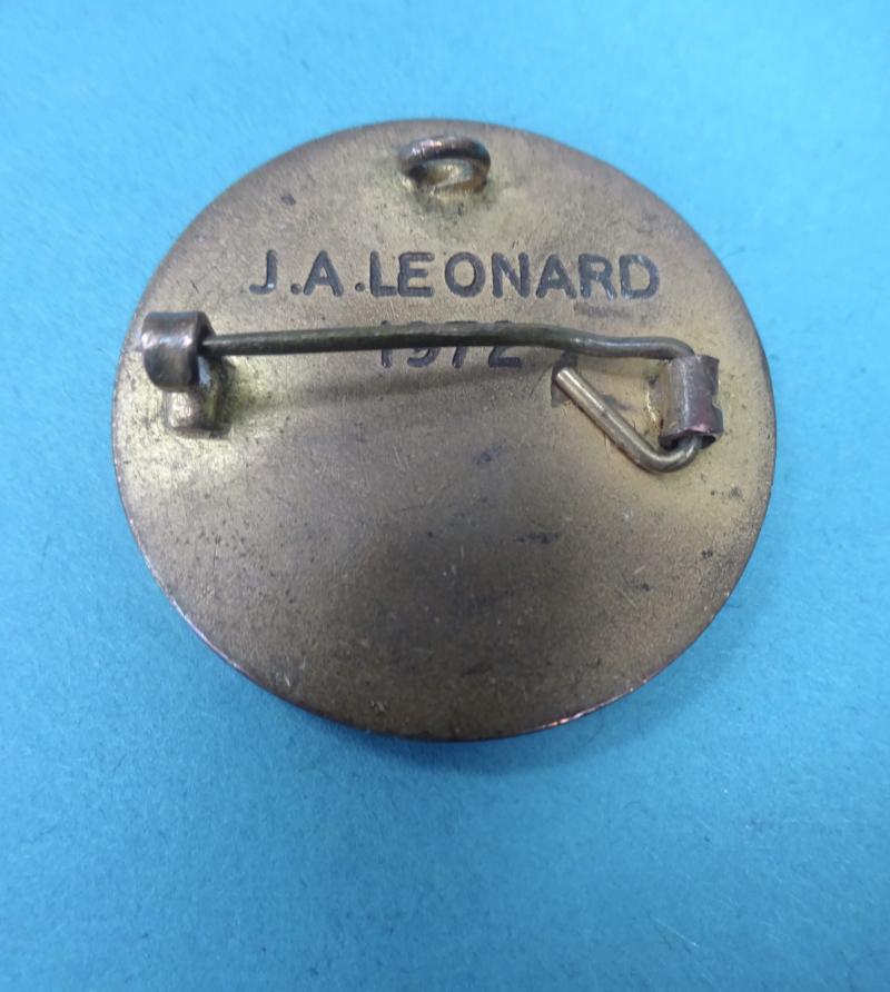 A Nice example of the Nurses Badge from the Royal National Orthopaedic Hospital in Stanmore Middlesex.These Badges were first issued in the 1960s and feature St Nicholas,the patron saint of children,flanked by two children.In Blue enamel with a gilt finish,this is named to J A Leonard 1972.Pin intact.Height 30mm