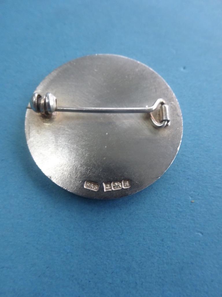 The badge features the coat of Arms of Derbyshire topped by a caduceus with the entwined snakes.It is also flanked by a number of Pomegranate fruits, a symbol of fertility and regeneration.the red enamel border bears North Derbyshire School of Nursing.Good condition with pin clasp and safety roller catch all good. The reverse has had the name and inscription ground away.It bears hallmarks for Fattorini & Sons Birmingham 1975