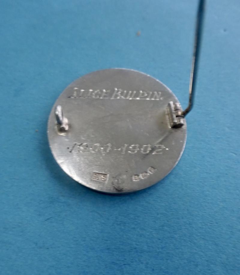 A silver and enamel Nurses badge from the Gloucestershire Royal Infirmary.It consists of the intertwined initials GRI with the Hospital title in silver on green enamel border.Very good condition with pin and clasp good.Engraved to the rear Alice Bulpin 1900-1902. Silver hallmarks for Fattorini & Sons Birmingham 1939 which suggests this badge may have been issued retrospectively many years after the training. . Height 32mm