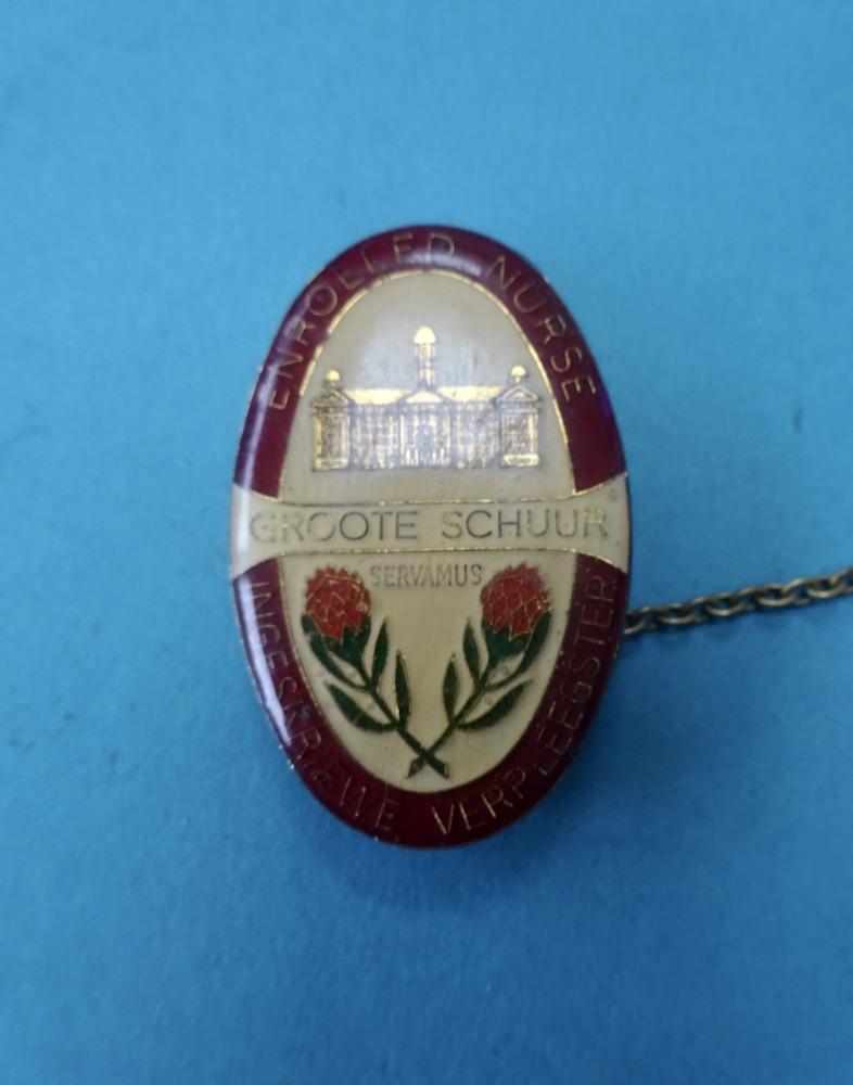 A selection of Nursing badges from South Africa.Two relate to Groote Schuur Hospital Cape Town and one for the Victoria Hospital Wynberg. The last is in silver and was sold to me as being a nursing badge but I have been unable to confirm this.