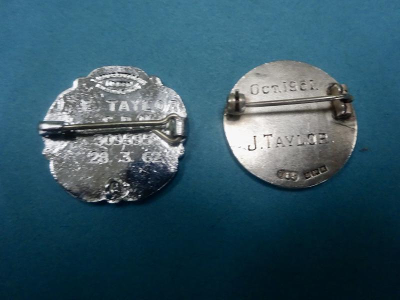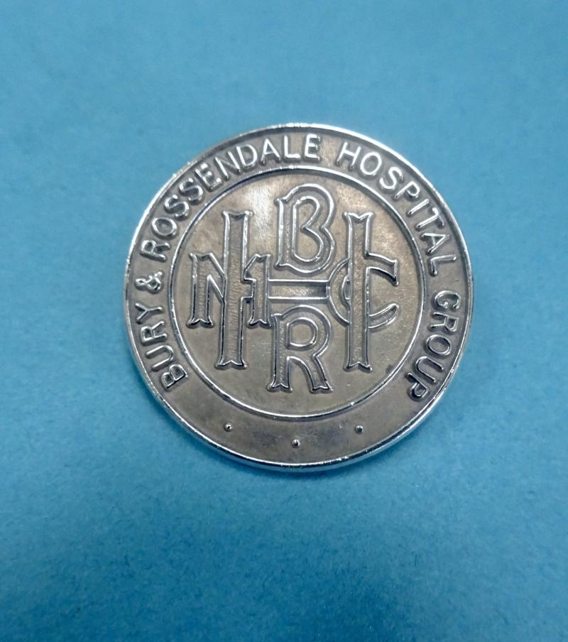 The next is a silver badge for the Bury & Rossendale Hospital Group. The design features the monogram BRHMC for Bury & Rossedale Hospital Management Committee.Good condition, pin clasp and safety roller catch all good.Engraved for Oct 1961 J Taylor Hallmarks for T&S Birmingham 1961.