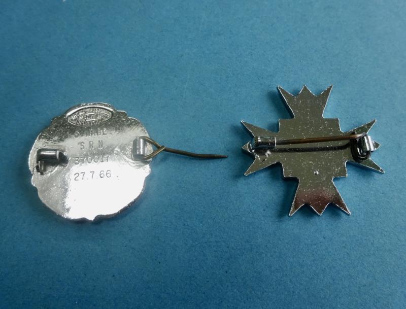 The second item is a chrome and enamel badge from the General Nursing Council For England & Wales .This is named for S Wade SRN 370017 27.7.1966 who is shown in the register as having trains dat the Sunderland Royal Infirmary. Good condition, pin intact.