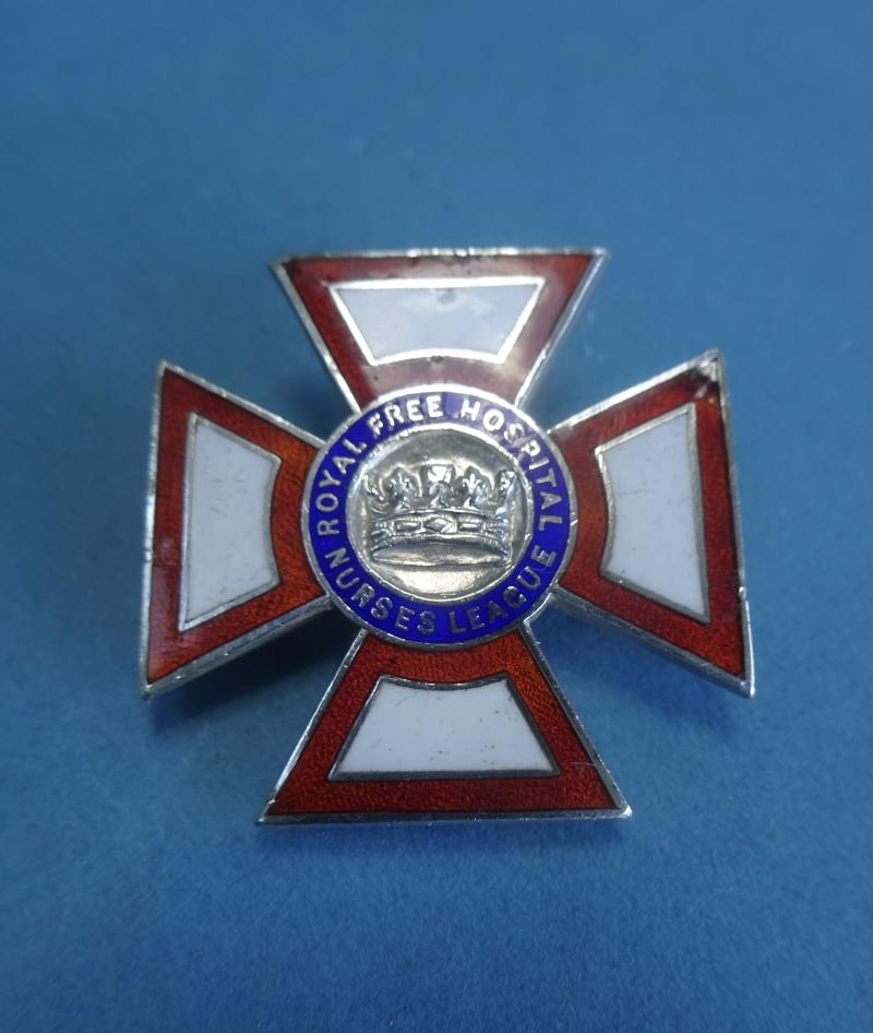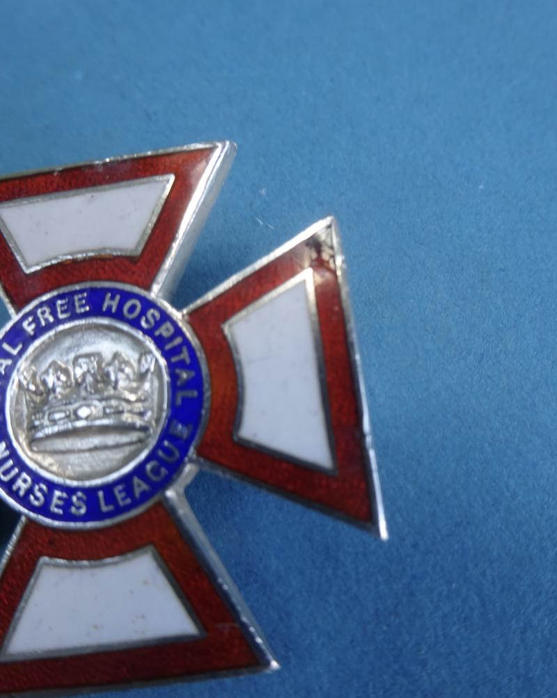 A silver and enamel Nurses badge from the Royal Free Hospital Nurses League, as originally issued between 1910 &1960.Featuring the original design which bore the Coronet.