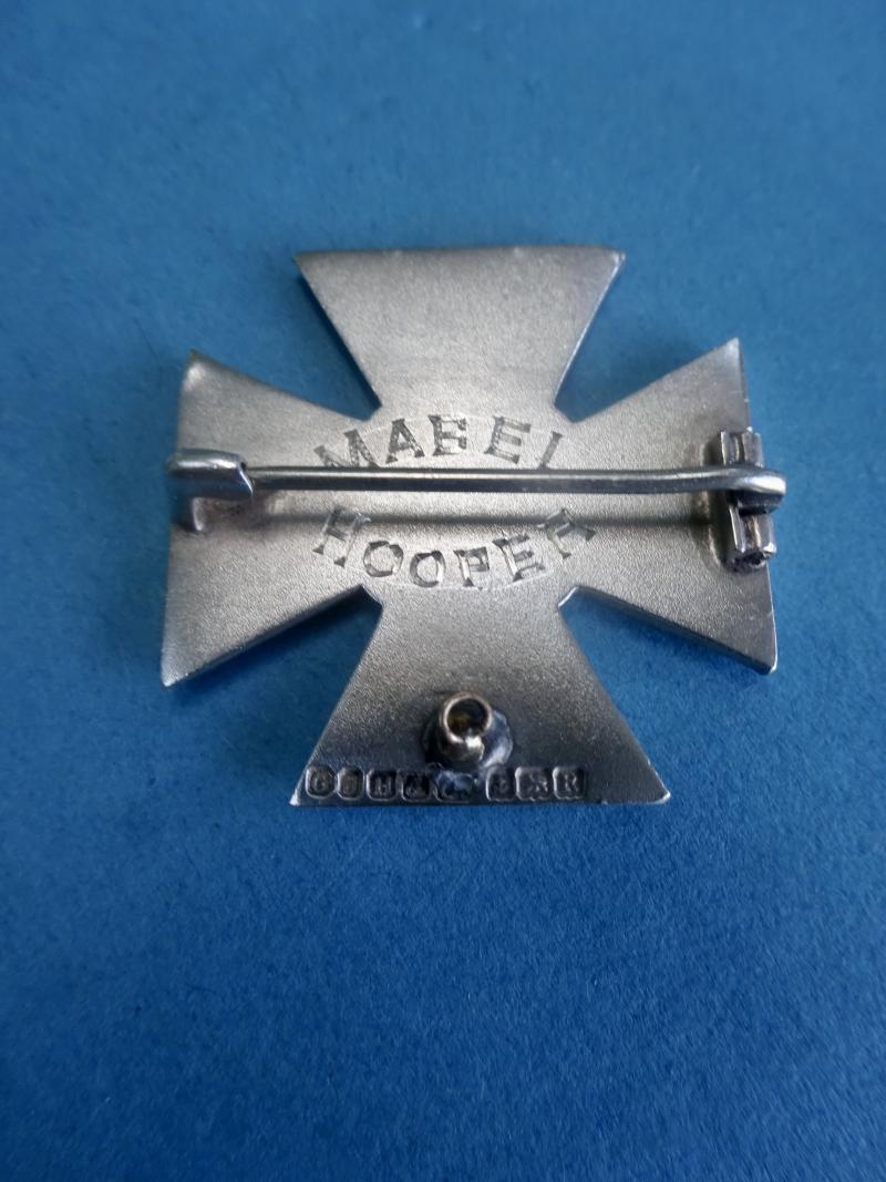 Condition good with one small chip to the tip of the right arm and some minor scratches to the enamels pictured .Pin and clasp intact, Named to Mabel Hooper. Hallmarked for GJH &C Birmingham 1941.Height 30mm